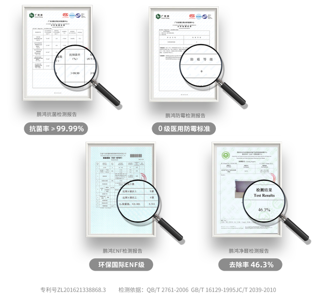 Solid wood carbon crystal board在實(shí)用新型專利認(rèn)證的基礎(chǔ)上,鵬鴻將“黑科技”碳晶技術(shù)應(yīng)用于板材,實(shí)現(xiàn)復(fù)合碳纖維與實(shí)木板材的強(qiáng)強(qiáng)聯(lián)合。板材具備物理抗菌功能的同時(shí),更依托碳晶技術(shù),實(shí)現(xiàn)了凈醛環(huán)保、高穩(wěn)定性等優(yōu)異性能,是家居裝修的理想選材。