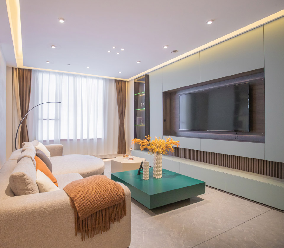 源自漢唐的中華文明,融入意式輕奢元素,碰撞出恰到好處的新中式家居。“45度拼接”與“三明治”結構工藝,令免漆木作韻味獨到。