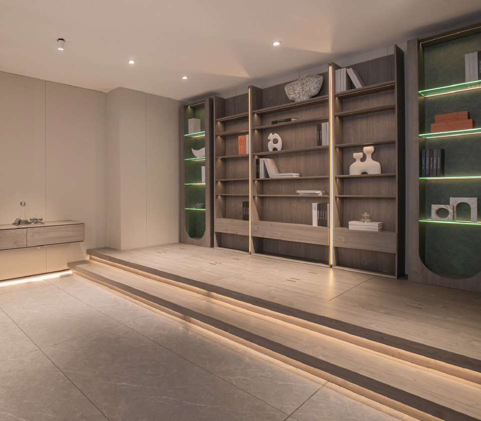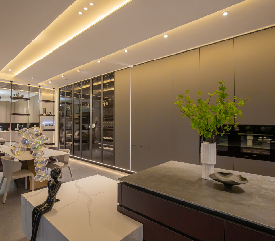 流暢的線條,勾勒干凈利落輪廓,柜體與燈帶的組合,營造奢闊有度的空間感。簡約而不簡單,每一寸產(chǎn)品肌理,都是對工藝的用心考量。