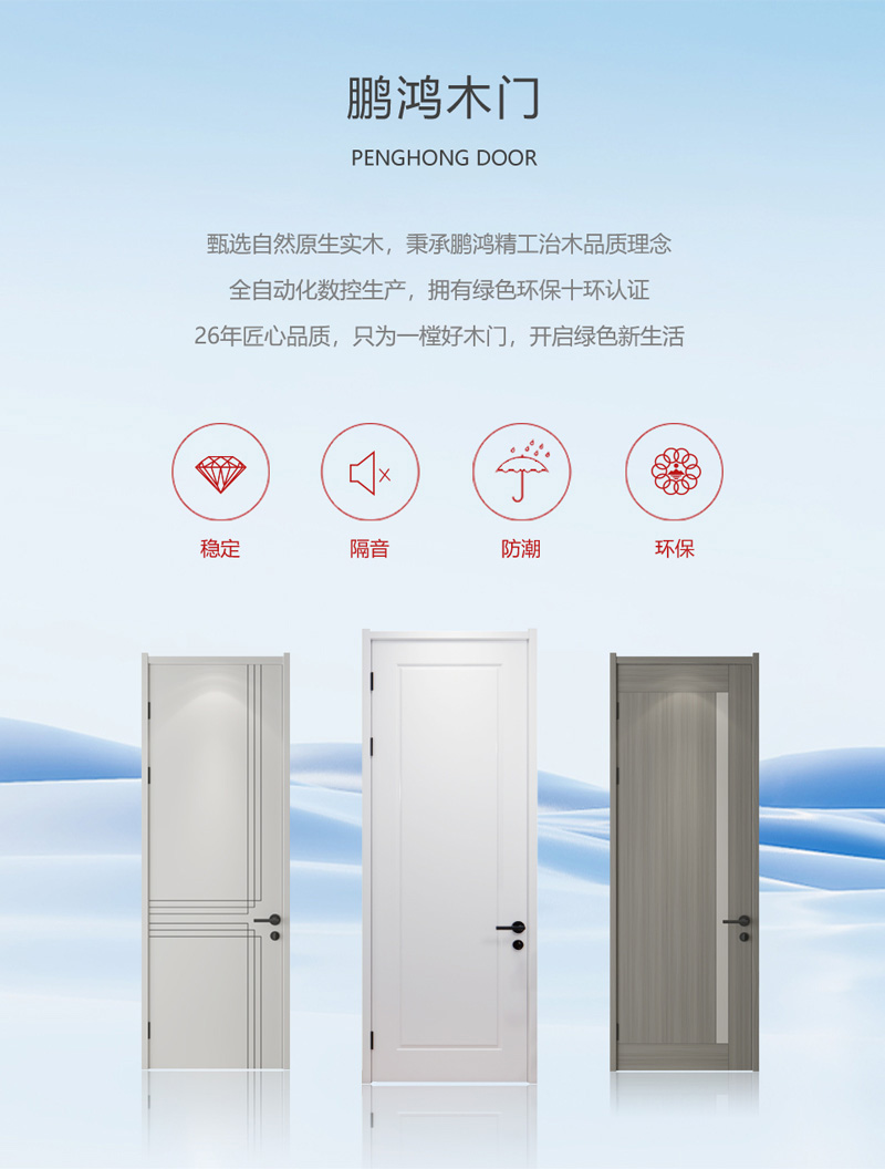 甄選自然原生實木,秉承鵬鴻精工治木品質(zhì)理念,全自動化數(shù)控生產(chǎn),擁有綠色環(huán)保十環(huán)認證。26年匠心品質(zhì),只為一樘好木門,開啟綠色新生活。