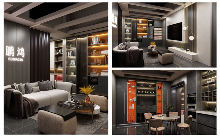 優(yōu)秀的展廳設(shè)計(jì),是促進(jìn)客戶(hù)參觀品鑒的基礎(chǔ)。此番鵬鴻We+定制家居的展位布置,以極簡(jiǎn)輕奢風(fēng)為主,將品質(zhì)生活與家居美學(xué)有機(jī)融合。