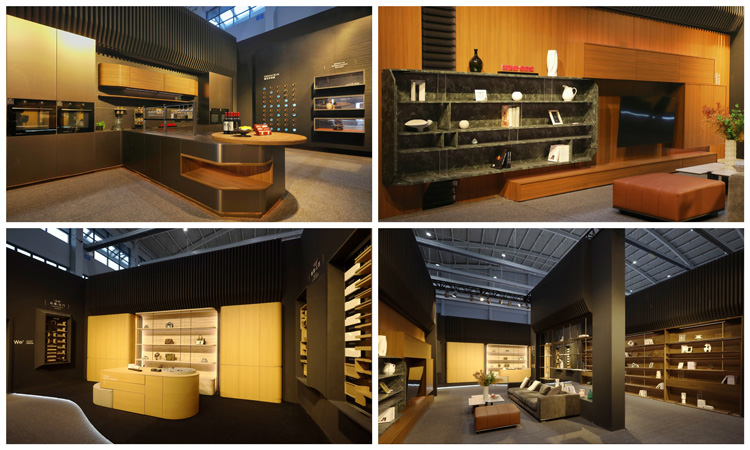 45度斜切結(jié)構(gòu)、骨骼線條、弧形元素、ABA板材工藝……多元美學(xué)融合,呈現(xiàn)全新家居意境。應(yīng)用上,ENF級環(huán)保,4.5米通頂家居,傳奇系列板材、第三代顆粒板、碳晶飾面板……為與會觀眾帶來高顏值、高個性化、高品質(zhì)的整家美學(xué)方案。