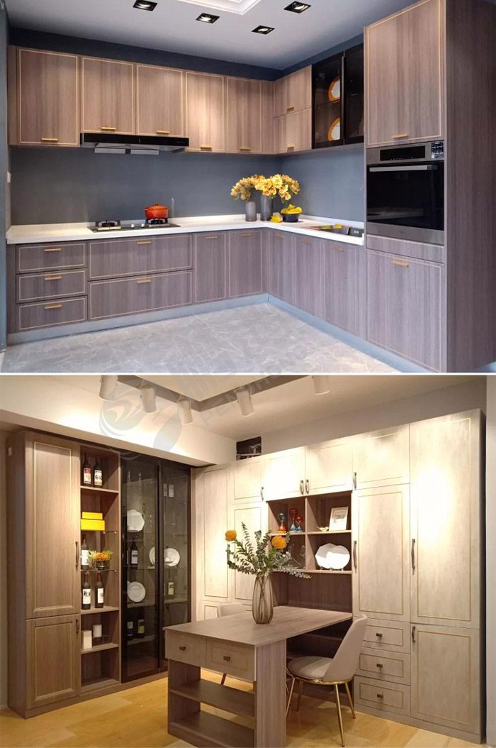 風(fēng)格方面,通過邊框、把手、金屬鑲嵌等線條元素的應(yīng)用,提升了柜體與門型的融合效果,產(chǎn)品的現(xiàn)代感更強。